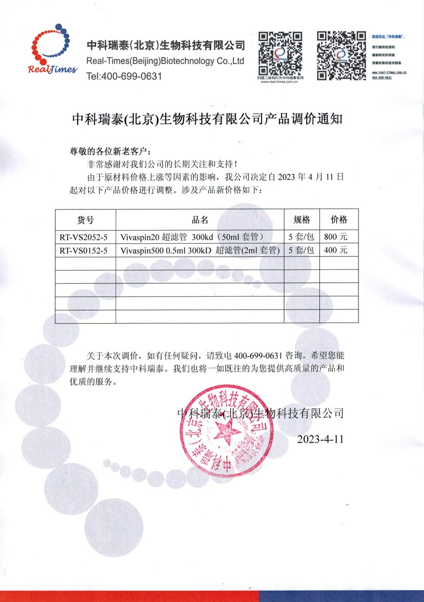產(chǎn)品調(diào)價(jià)通知-Vivaspin超濾管產(chǎn)品