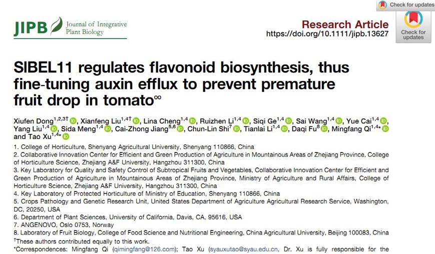 JIPB [2022 IF 11.4]沈陽農(nóng)業(yè)大學齊明芳/許濤教授團隊在番茄脫落調(diào)控機制方面取得新進展