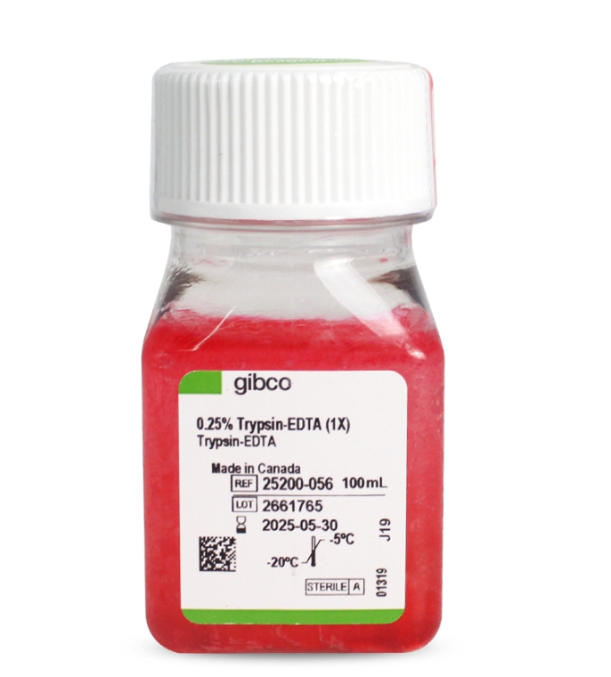 這種胰蛋白酶的液體配方含有EDTA和酚紅。Gibco胰蛋白酶EDTA是由胰蛋白酶粉制成的,胰蛋白酶粉是一種來自豬胰腺的蛋白酶的輻照混合物。由于其消化能力,胰蛋白酶被廣泛用于細胞分離、常規(guī)細胞培養(yǎng)傳代和原代組織分離。分離所需的胰蛋白酶濃度隨細胞類型和實驗要求而變化。請參閱Gibco胰蛋白酶溶液的完整范圍和推薦的解離條件。