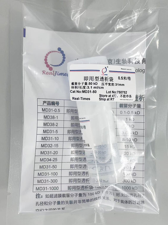 透析膜浸泡在儲(chǔ)存液中,放置于4-37℃之間環(huán)境。建議密封放在冰箱冷藏室4℃保存。不能冷凍貯存。
