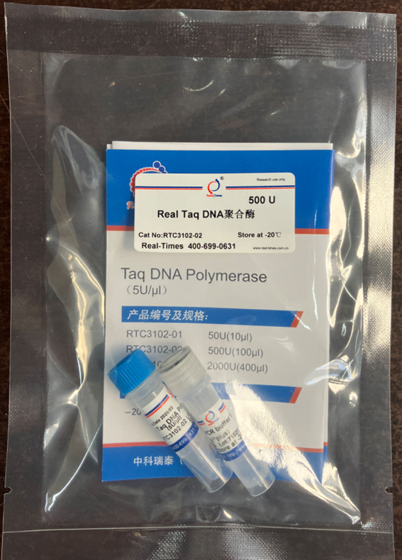 DNA Polymerase是從克隆有Thermu aquaticus DNA Polymerase基因的大腸桿菌經(jīng)誘導(dǎo)表達(dá)后分離純化的,其分子量為94 KD。具有5’-3’DNA聚合酶活性和5’-3’外切核酸酶活性,無3’-5’外切酶活性。在PCR反應(yīng)中,Real Taq DNA Polymerase延伸速度為1-2 kb/分鐘,產(chǎn)物3’端帶A,可直接用TA載體克隆。