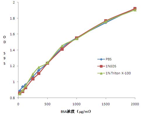 mM。同時,此方法測定蛋白濃度可以兼容受高濃度的去垢劑影響,可以適用于膜蛋白樣品的濃度測定。蛋白樣品中SDS濃度低于1%,Triton