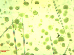 μl葉綠體溶液稀釋20倍,取50 μl稀釋液顯微鏡40倍物鏡觀察,如下圖。