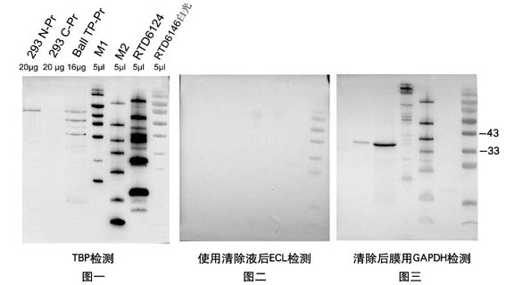 1. 在完成Western化學發(fā)光檢測后,NC膜或PVDF膜用適量蒸餾水中震蕩漂洗5分鐘;重復漂洗2次;1×TBST漂洗一次。